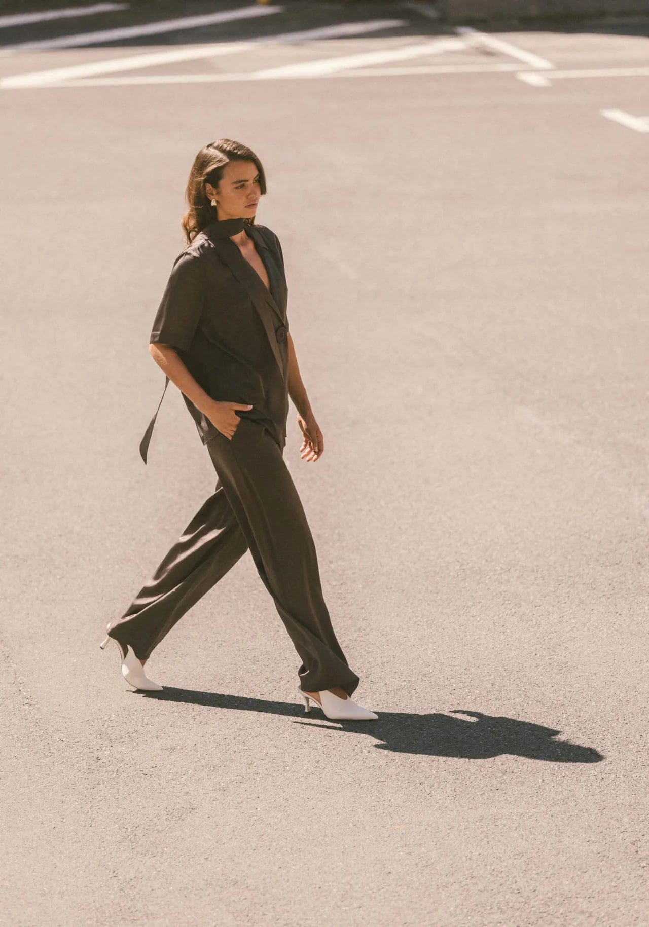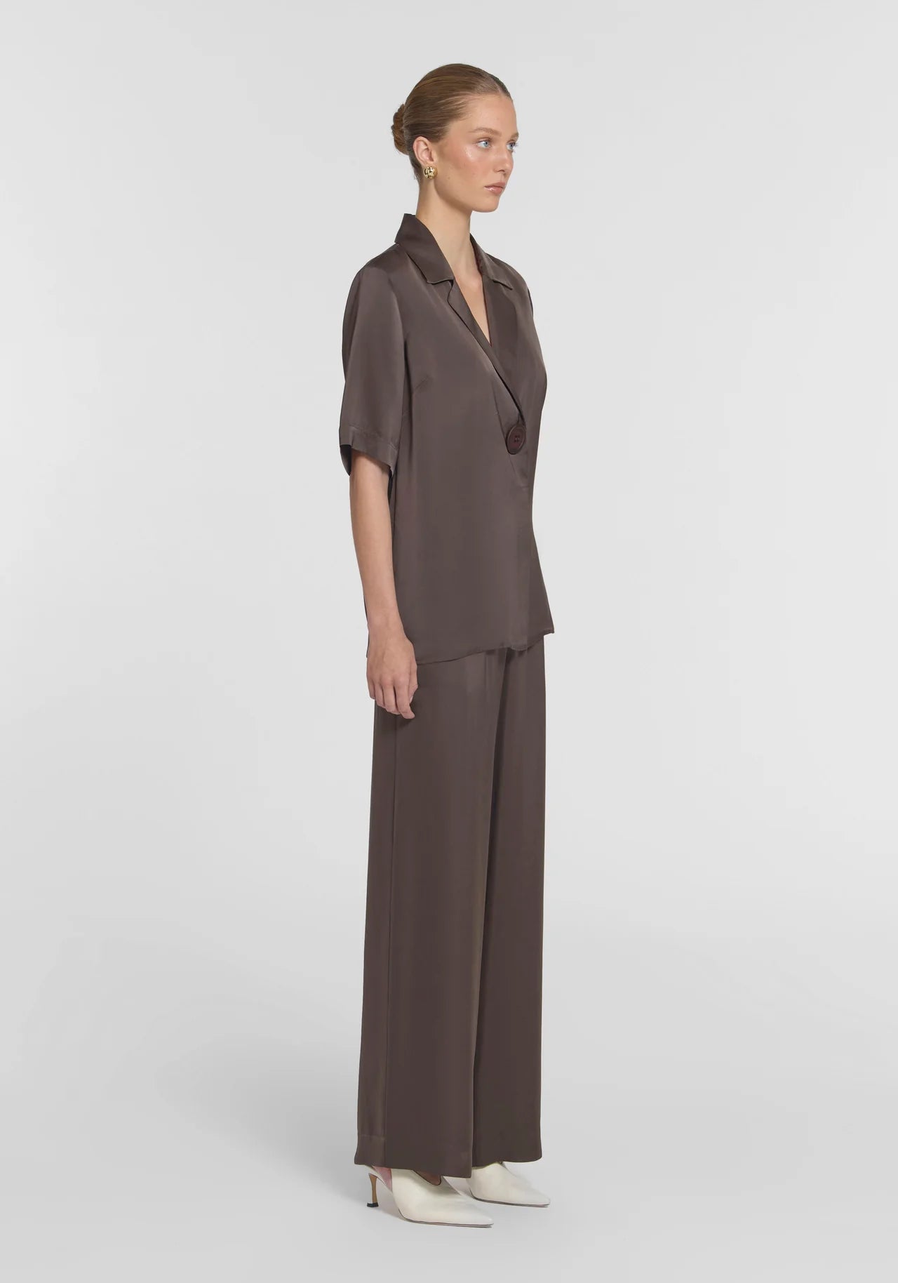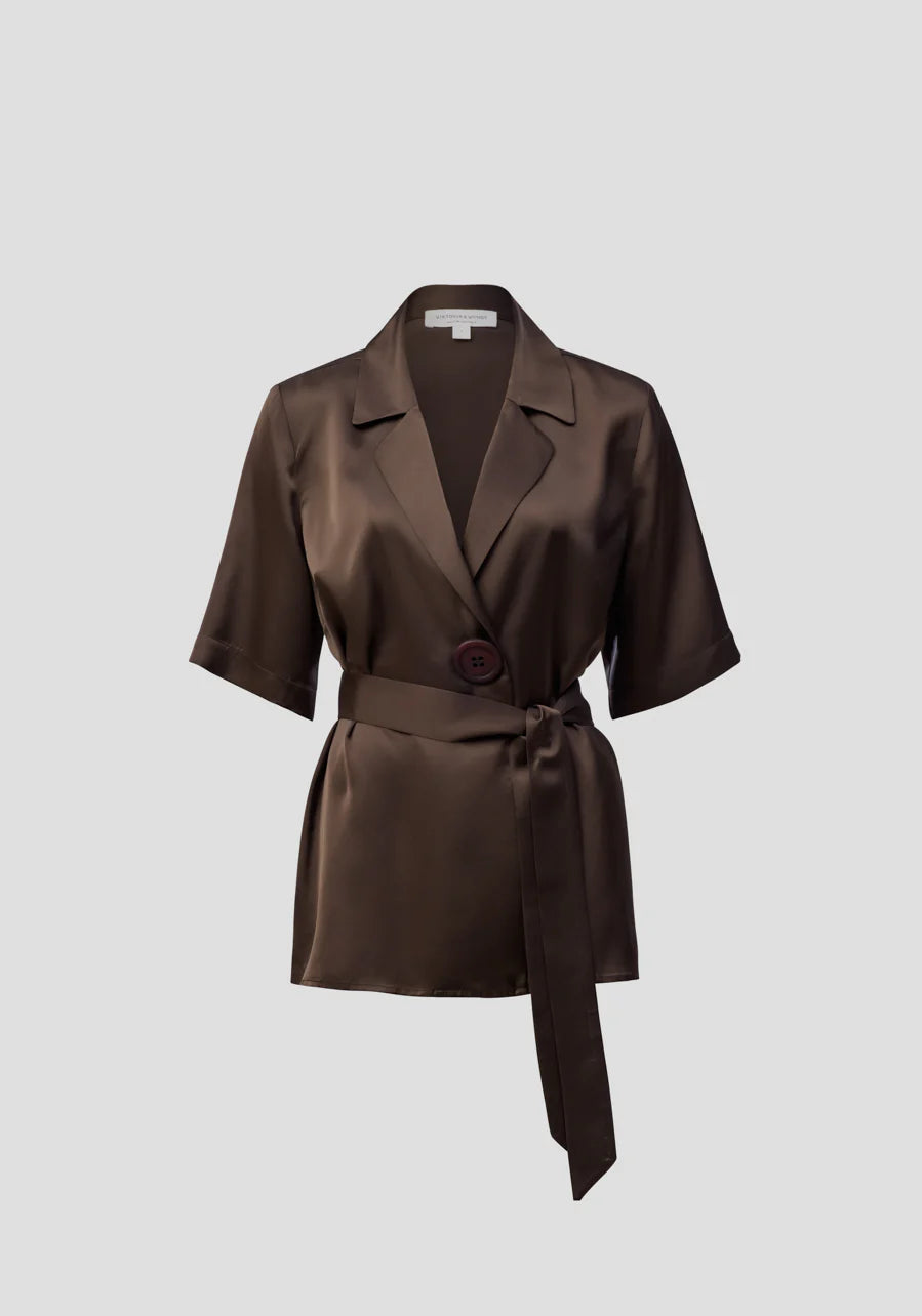 Introducing the Chorus Shirt, tailored in our signature cupro blend in chocolate. Showcasing a relaxed silhouette with an oversized marble-look button and a removable tie to cinch the waist, it offers elevated versatility. Pair with the Pilot Pant in the matching hue for an air of quiet luxury, or style back with separates to balance the silhouette.