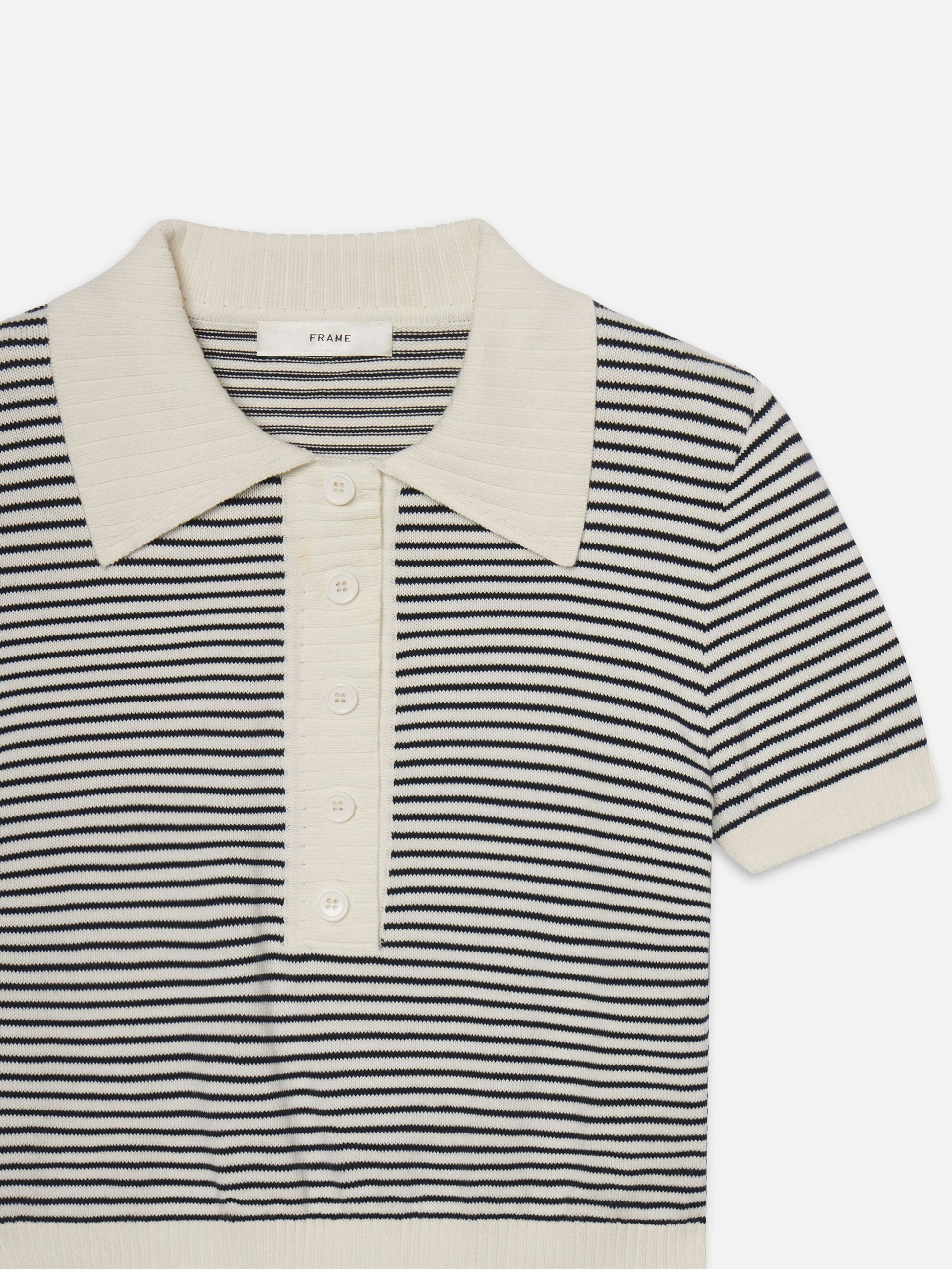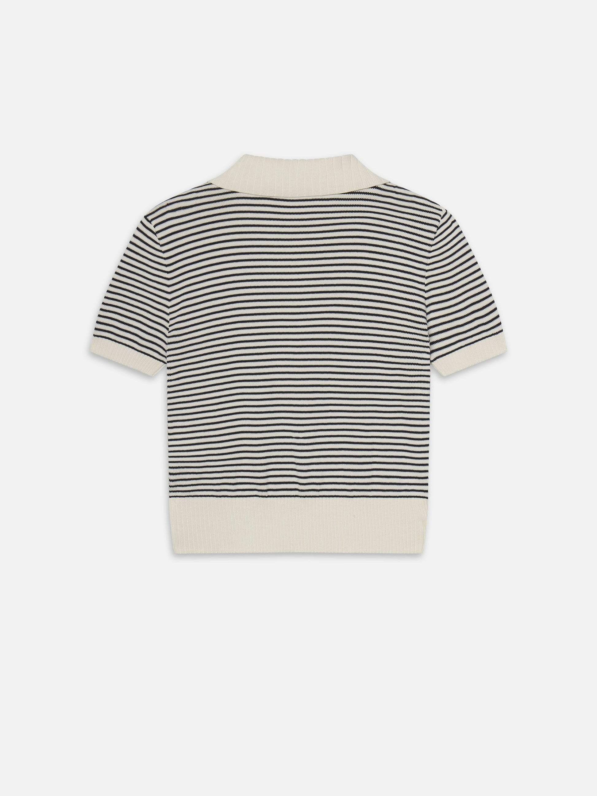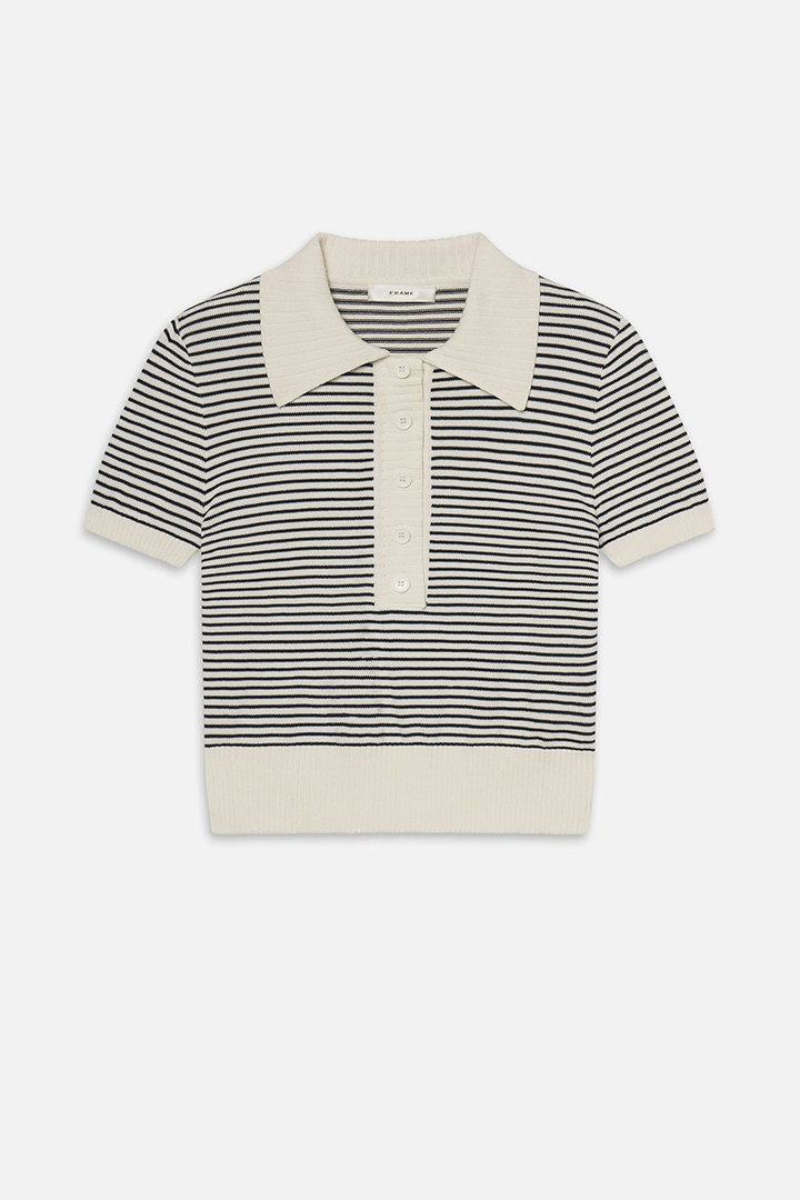 Graduated from basic. The Graduate Polo features buttons, navy stripes, a cream collar and placket, and ribbed trim for a crisp, fitted shape. Smart with trousers, easy with denim—this one passes every test.