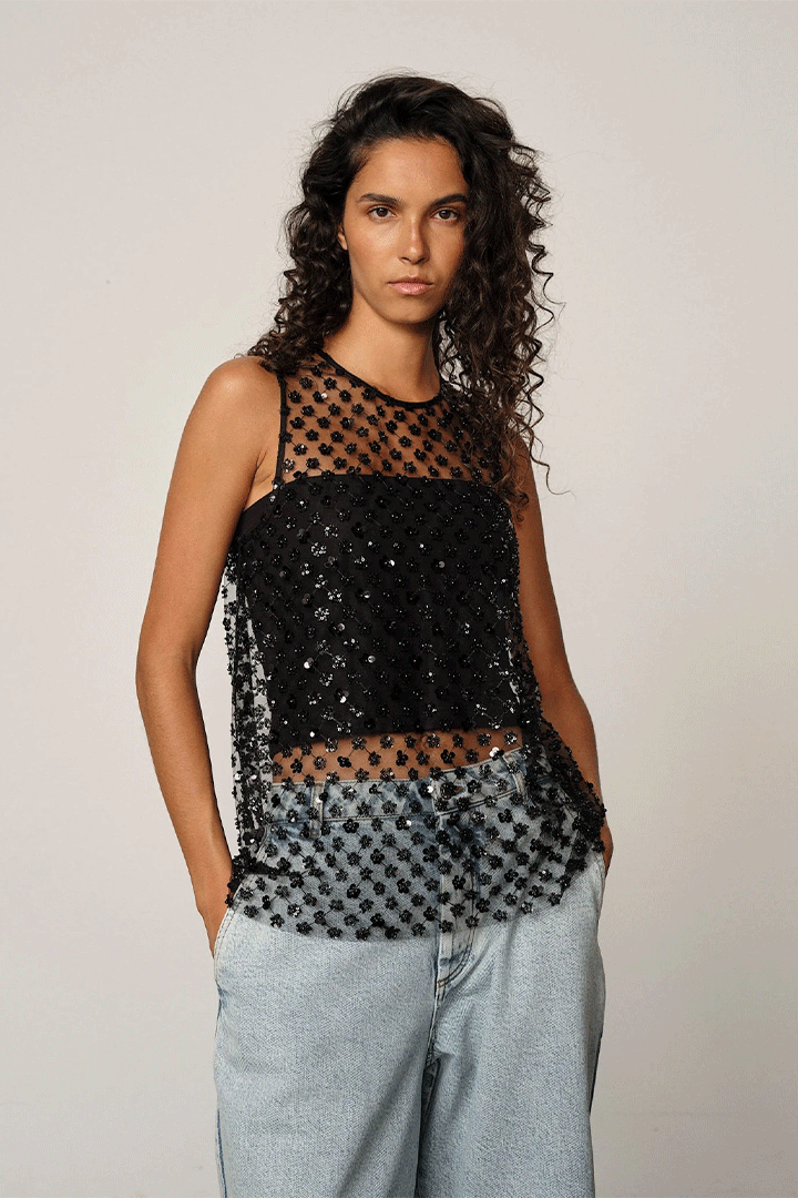 Detailed with floral sequins that create subtle texture and light play. Designed with a straight silhouette and comes with a matching tube top for effortless layering.