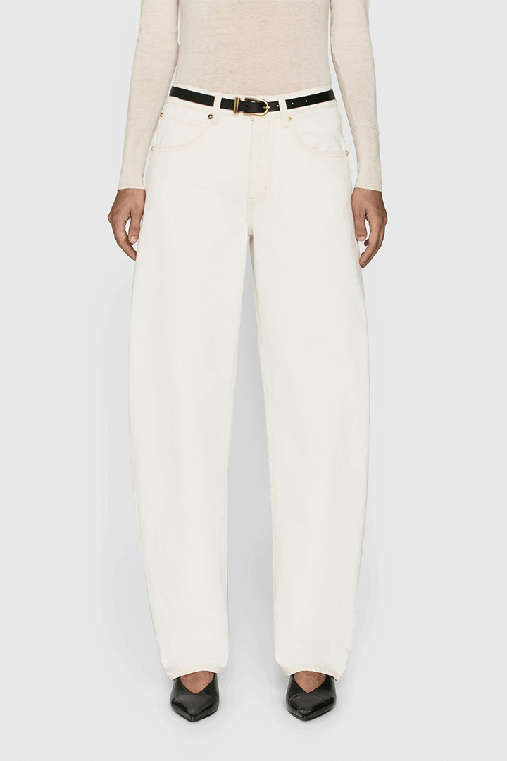 Our fresh take on a trending silhouette, this Low Slung Barrel is the new pair to add to your current rotation. It has a waist that sits right on the hips with a subtle taper at the leg and an inseam that rests on top of the foot. In other words, a flattering shape that looks good with all of your closet essentials.
