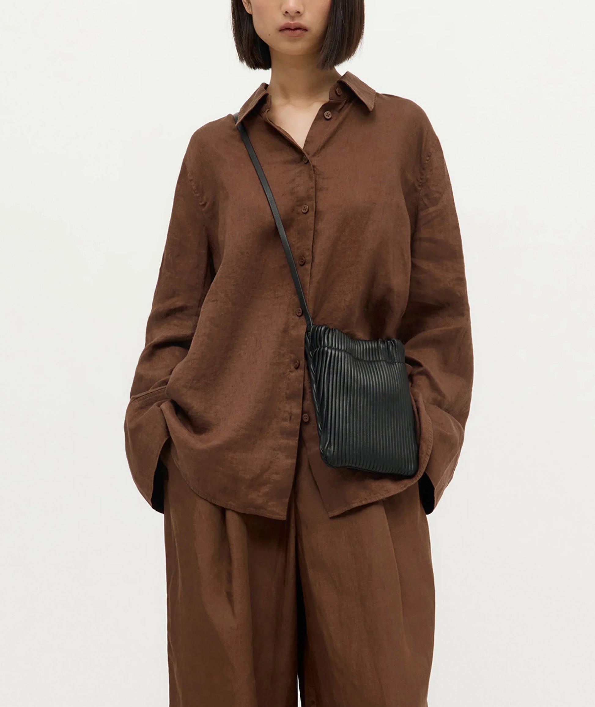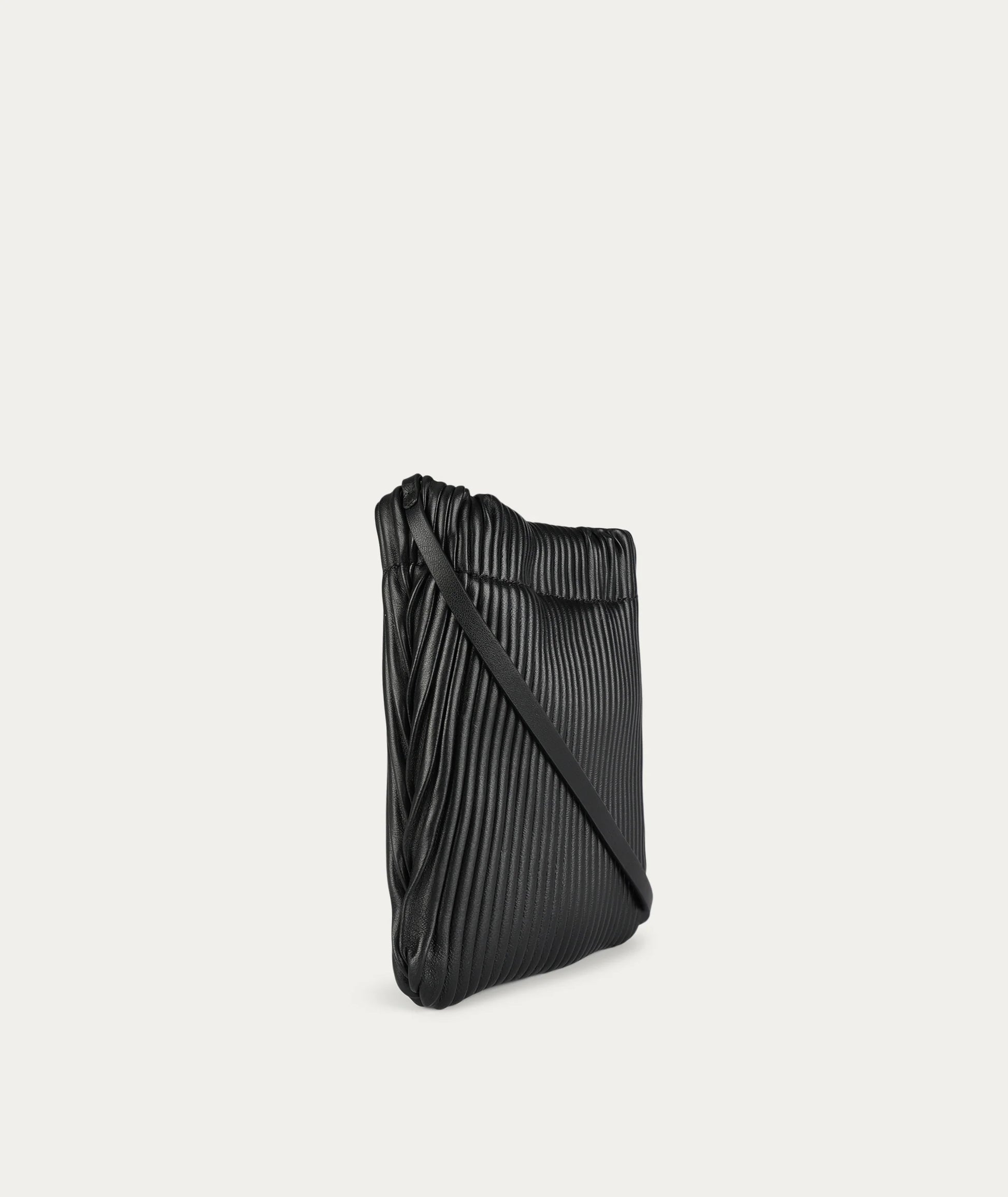 Mr Cinch Pouch is handcrafted with Pleated Calf Nappa trimmed with Calf Nappa, and brass hardware. He features a unique cinch detail and a slightly curved silhouette. Perfect for those on-the-go with his leather crossbody strap, a foldover magnetic closure keeps it all close to hand.