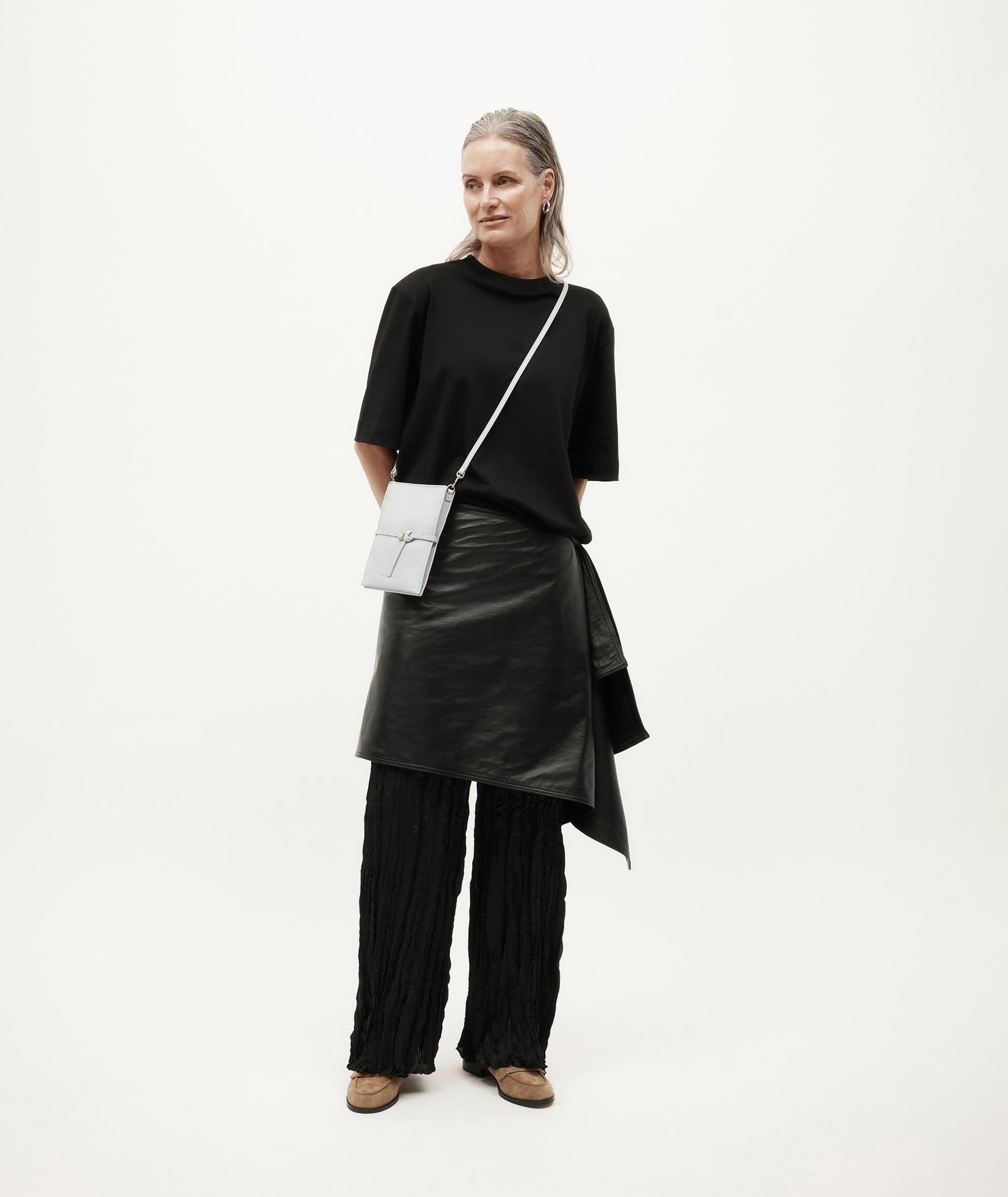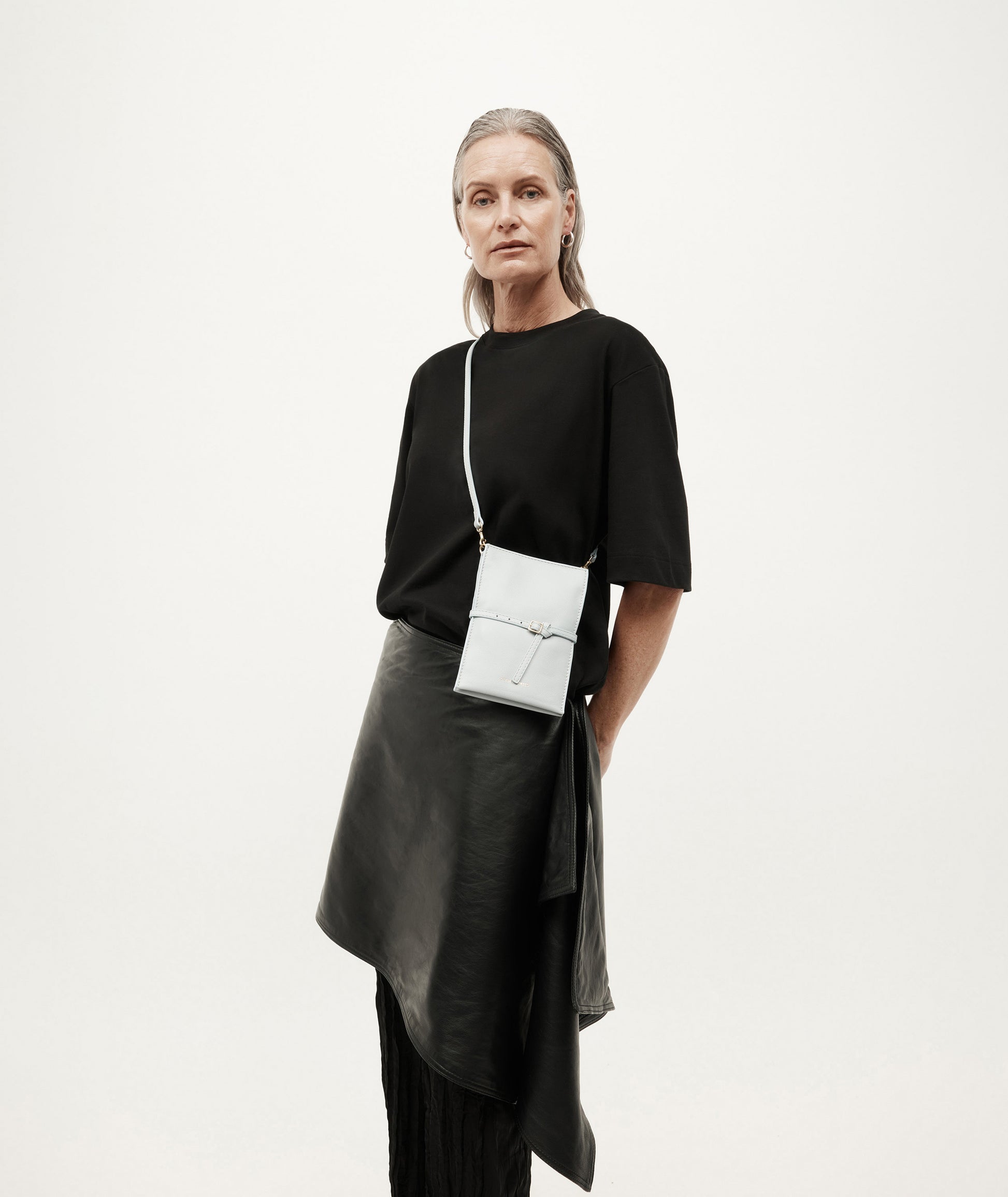 Crafted from buttery-soft Calf Nappa, Mr Penny Pouchette in Iceberg offers a compact silhouette with leather strap detailing and a front buckle accent. A detachable strap allows for versatile wear, while a back slip pocket keeps essentials close.