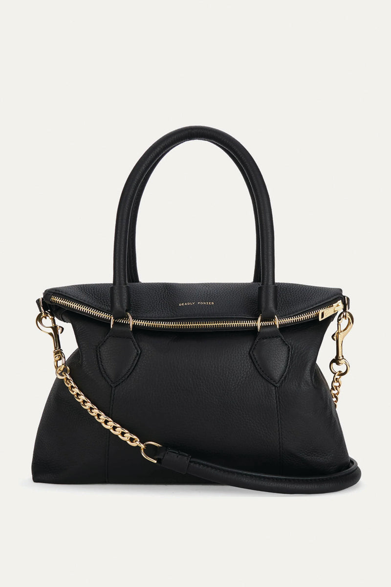 Embodying the legacy of Deadly Ponies fine craftsmanship, Mr Robin is known for his spacious and functional shape; returning this season with external seaming and updated top handles. Handheld by dual top handles, and worn over the shoulder, or crossbody, with the detachable leather and brass chain strap; Mr Robin is versatile at his core. Made from our signature supertouch Bovine leather, and fitted with an interior zip pocket and two slip pockets, he's the kind of companion that won't ever let you down.
