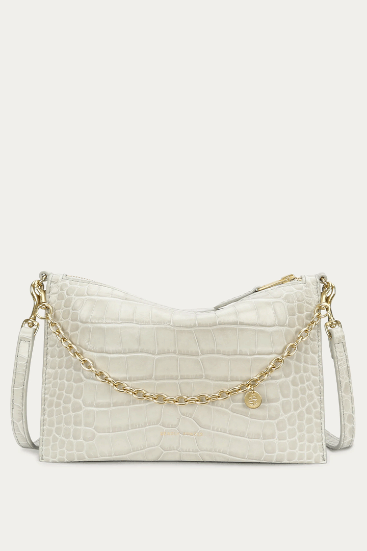 Intricately crafted from a single piece of croc-embossed Calf Leather in Kina, Mr Siamese is defined by a sleek, streamlined silhouette. With a detachable solid brass chain and adjustable strap, he transitions effortlessly from clutch to shoulder or crossbody wear.