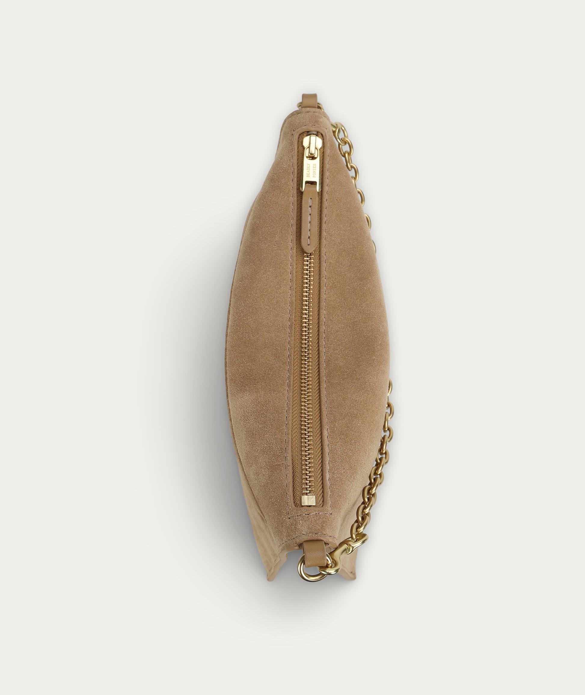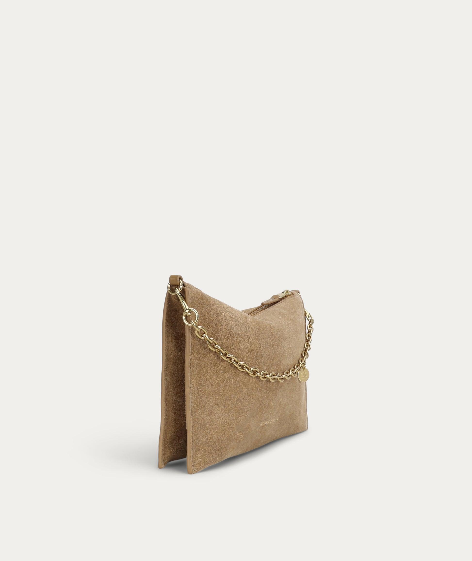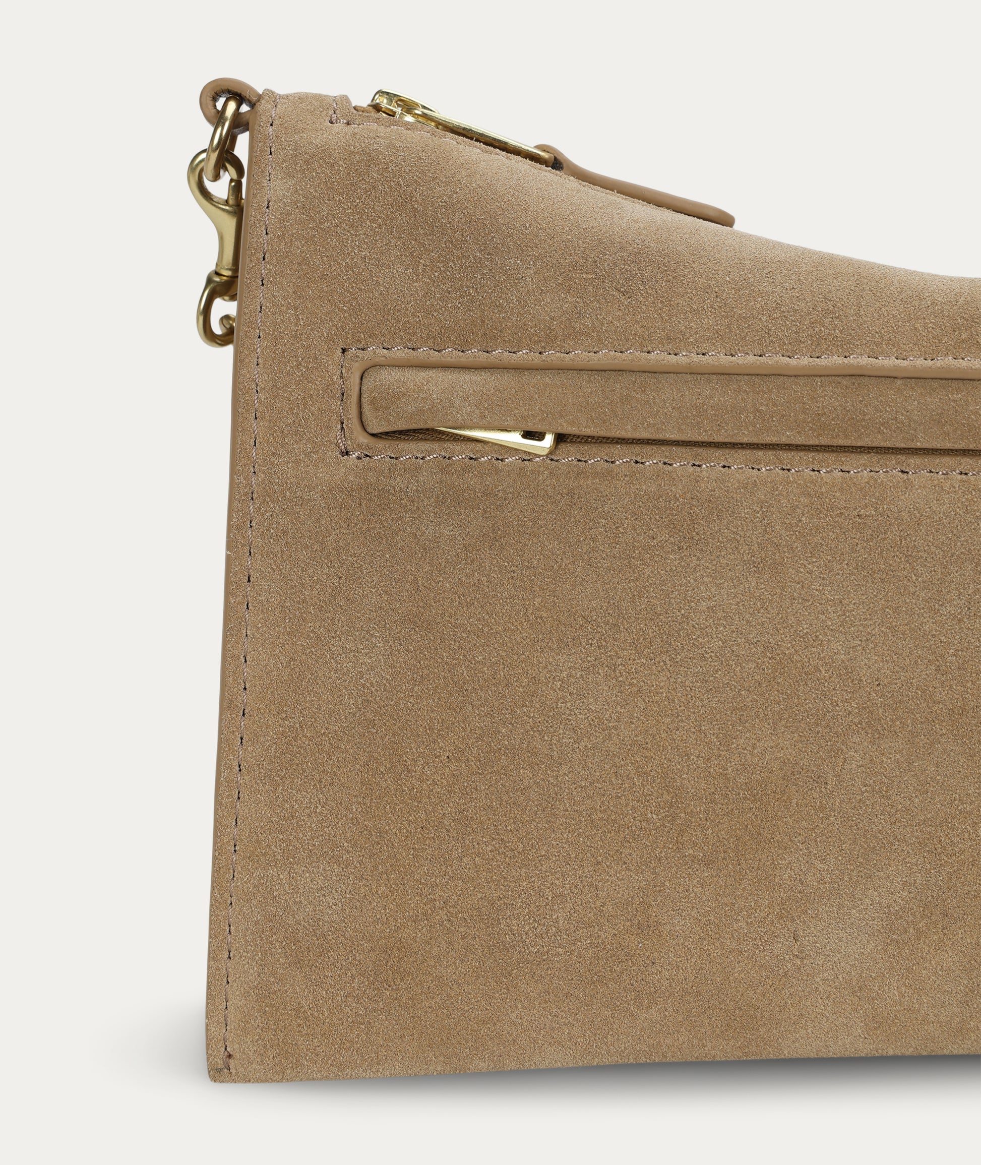 Intricately crafted from a single piece of soft Calf Suede in Oat, Mr Siamese is defined by his streamlined silhouette. With a detachable solid brass chain and adjustable strap, he transitions seamlessly from clutch to shoulder or crossbody wear.