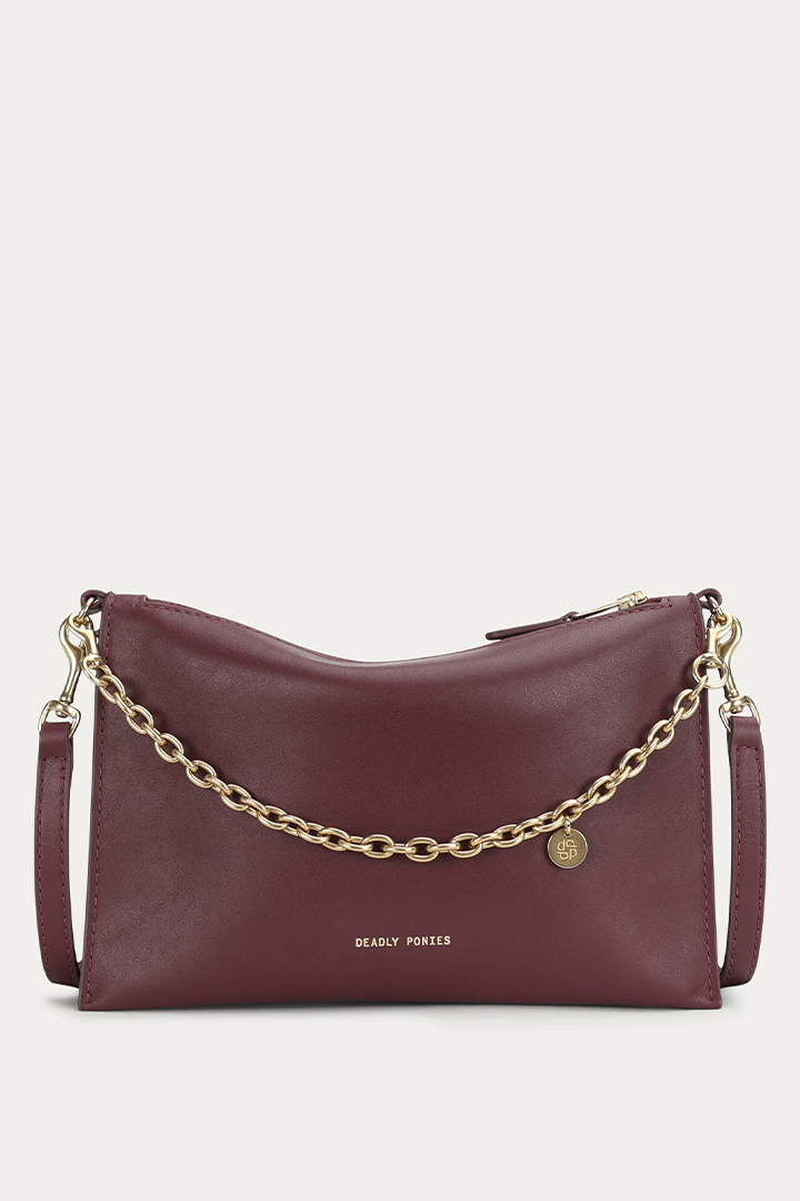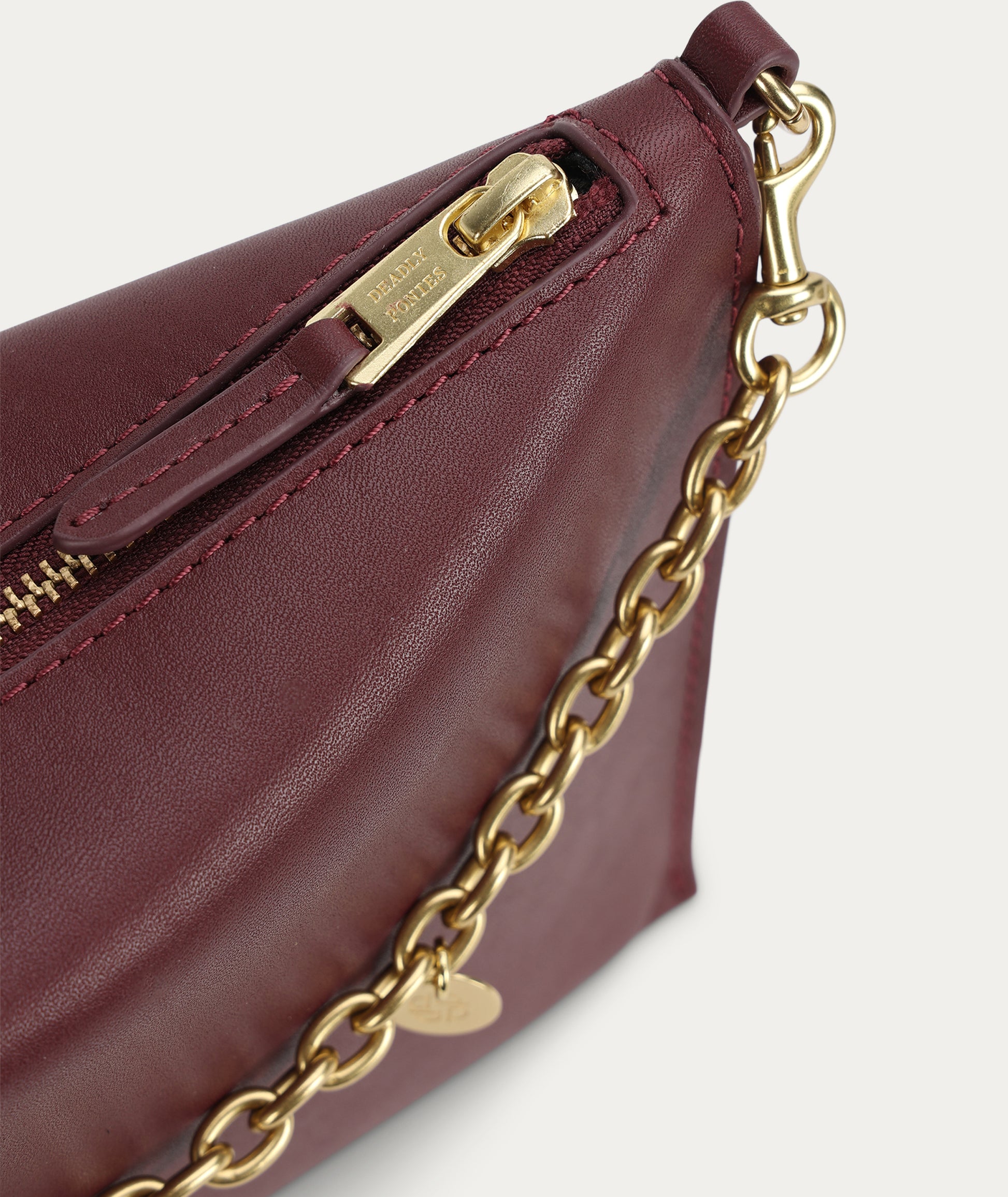 Intricately crafted from a single piece of Ironed Calf Nappa in Radicchio, Mr Siamese is defined by his streamlined silhouette. With a detachable solid brass chain and adjustable strap, he transitions seamlessly from clutch to shoulder or crossbody wear.