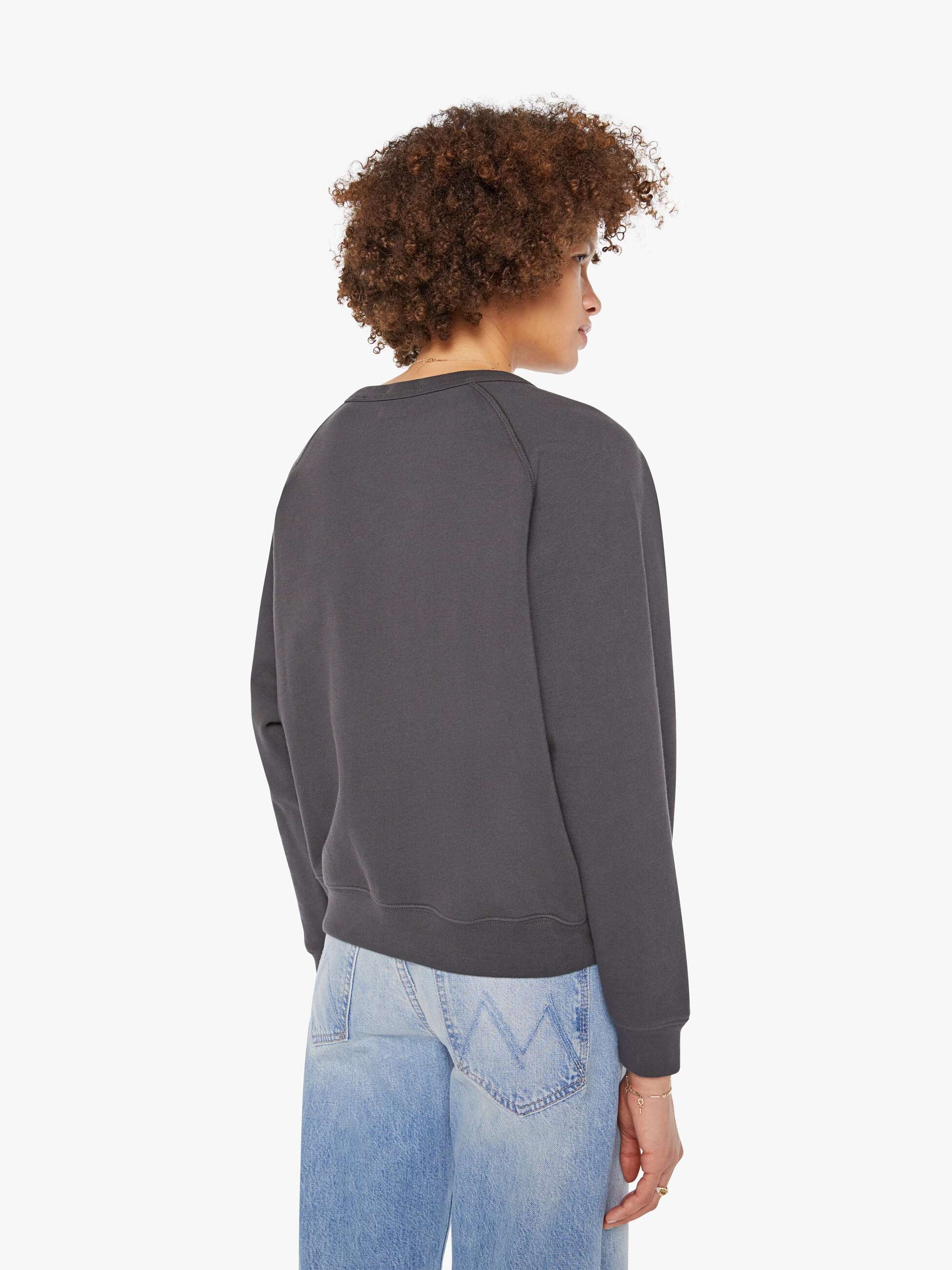 Cross my heart. An oversized raglan sweatshirt with a crewneck, ribbed hems and a slightly cropped fit. Made from super-soft 100% cotton, the sweatshirt is designed in faded black with a heart and dagger graphic on the front.