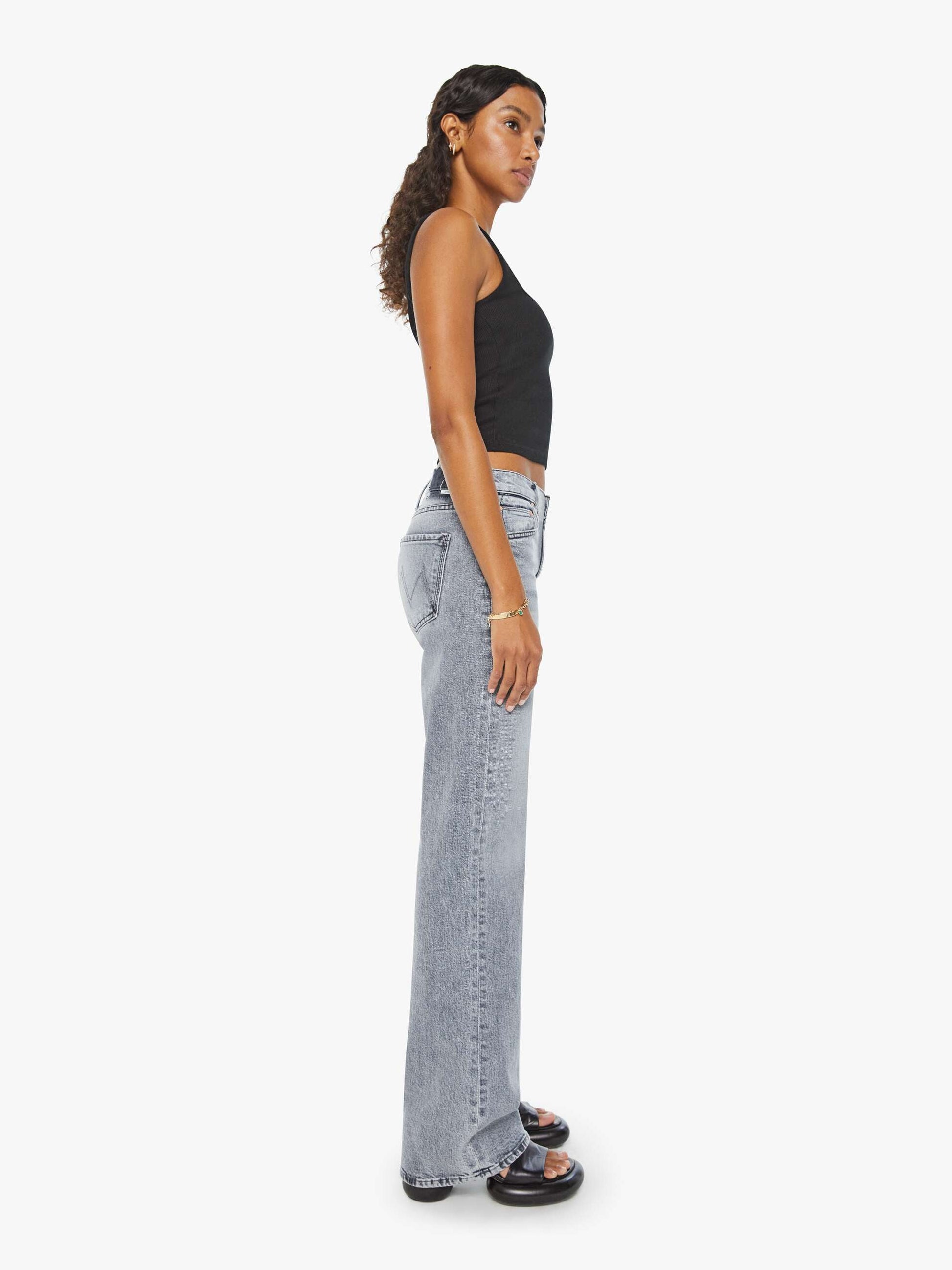 Forget me not. High-waisted jeans designed to sit lower on the waist with a wide bootcut and a long 35 1/4 inch inseam. Made from semi-rigid SUPERIOR denim, Drawing A Blank is a light-grey wash with whiskering and fading.