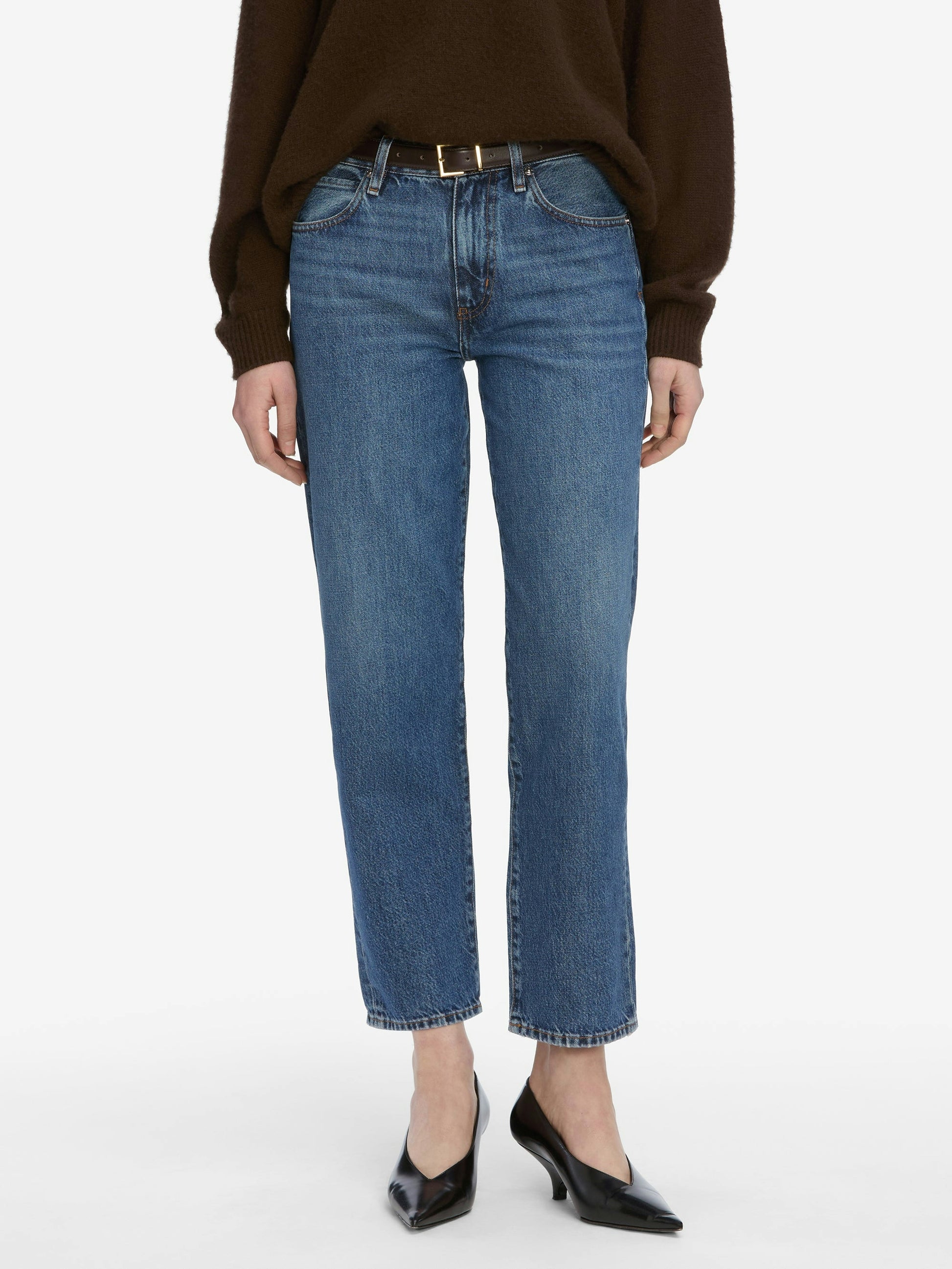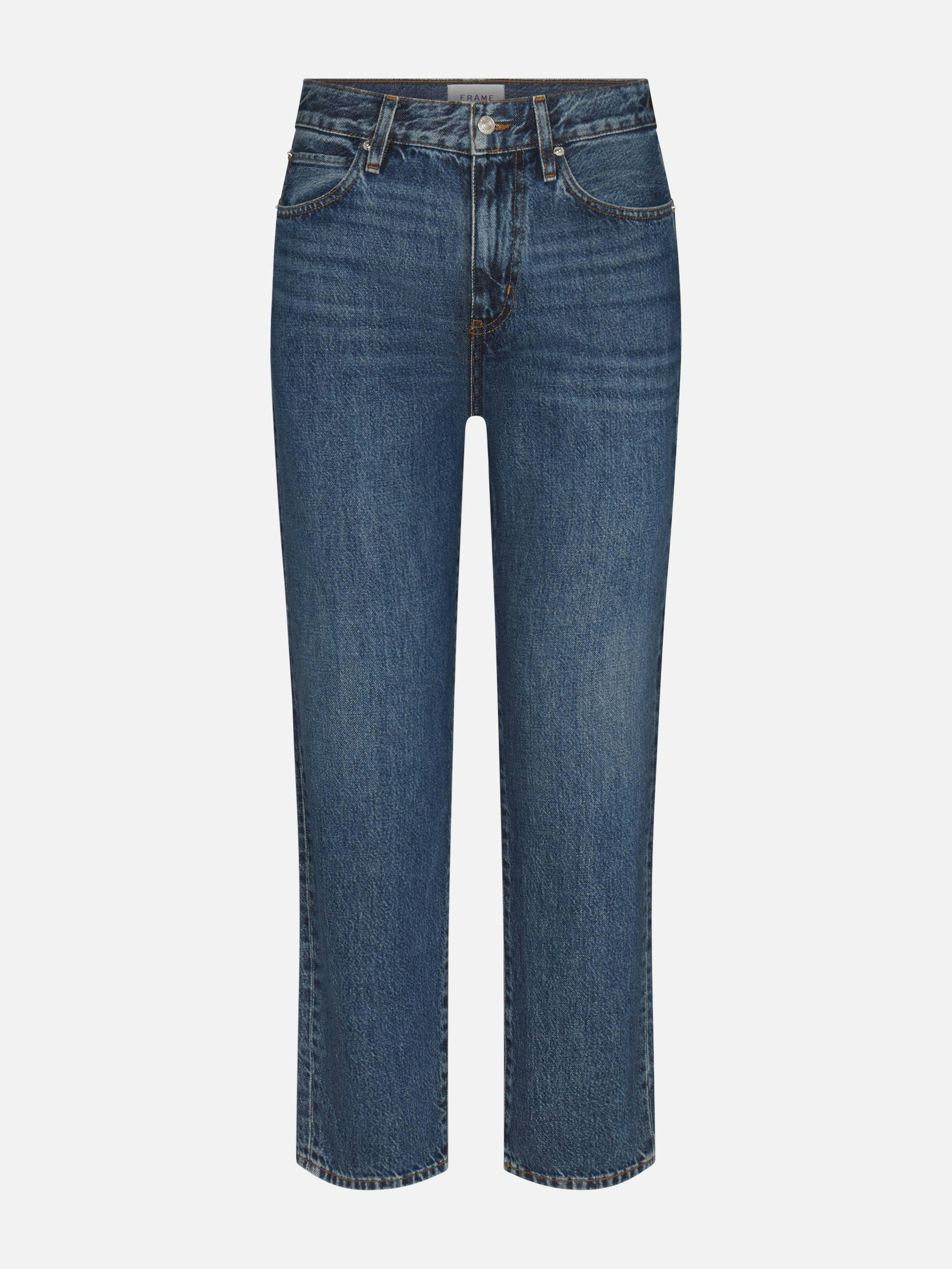 A cleaned-up rendition of a relaxed jean, this straight-leg pair "hangs" from a mid-rise waist with just enough room through the hip and thigh for a fluid fit and feel. Never slouchy, always effortless, The Hang has an easy, tailored look that strikes the perfect balance.