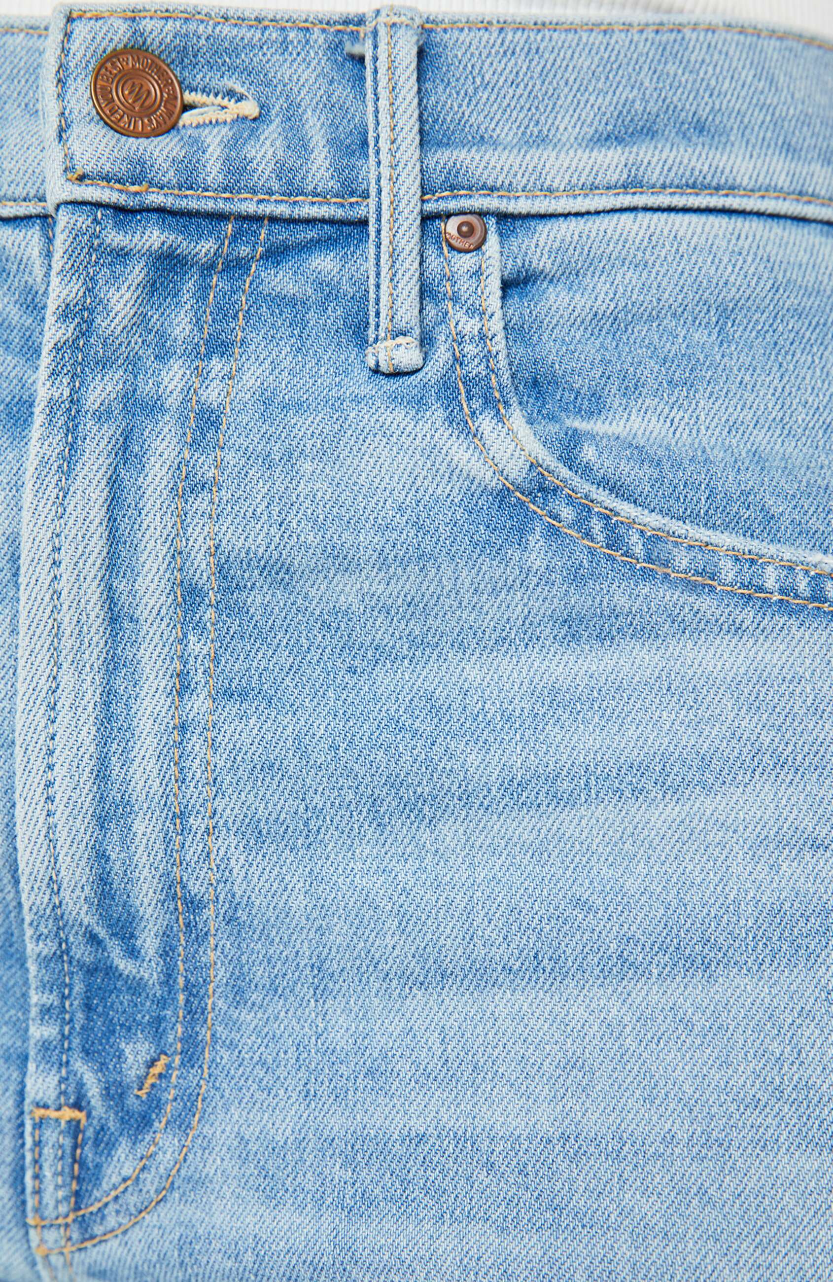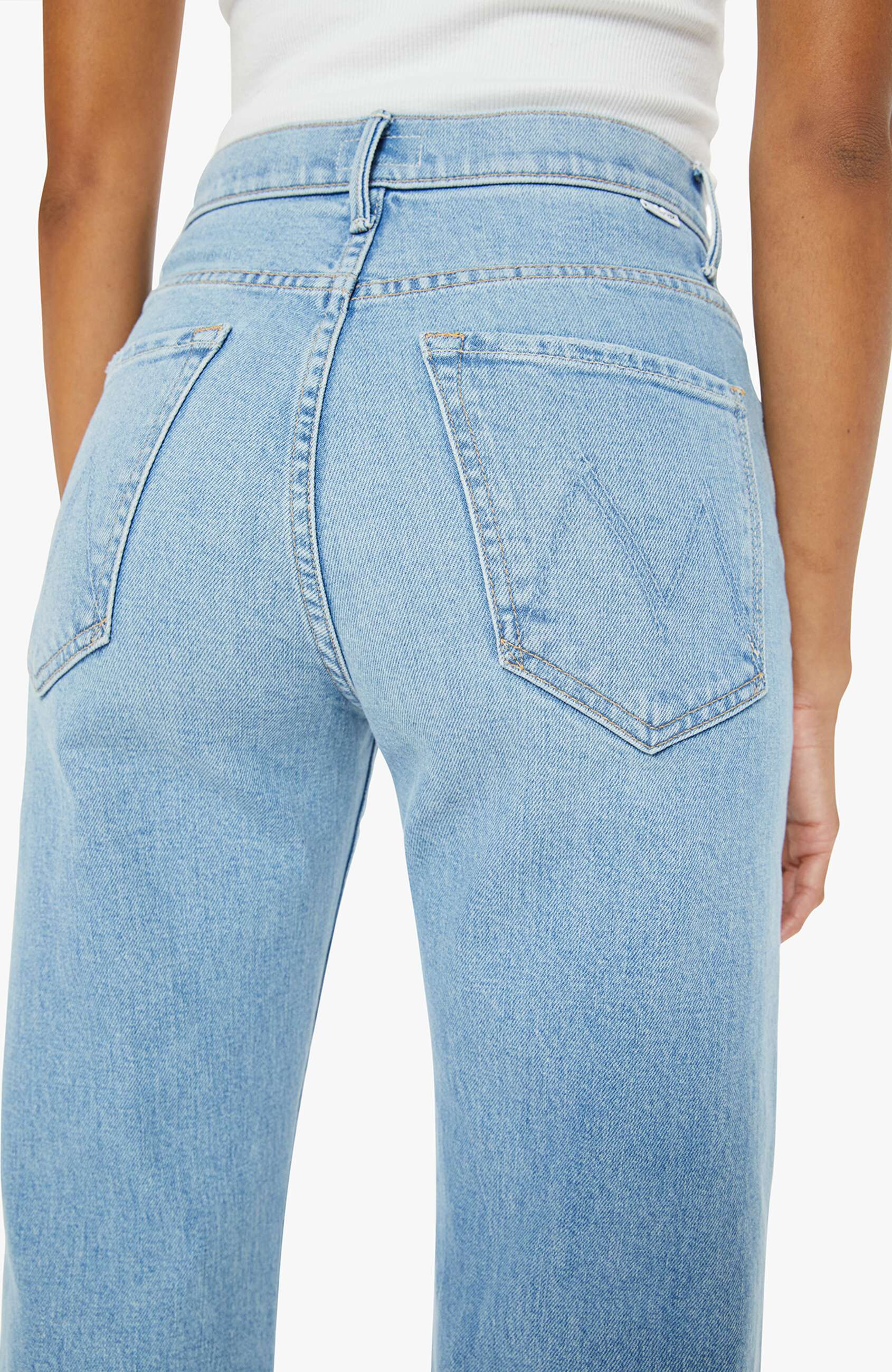 Brawn and brains. Wide-leg pants with a super high rise and a 32-inch inseam with a clean hem. Made from semi rigid denim, Ivy League Cowboy is a light blue wash with whiskering and fading at the knees.