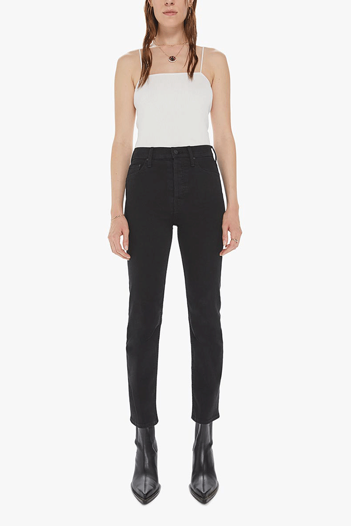 Dressed to impress. High-rise jeans with a straight leg, button fly, ankle-length inseam and a clean hem. Cut from a cotton blend with a touch of stretch, Lasting Impression is black with tonal hardware.