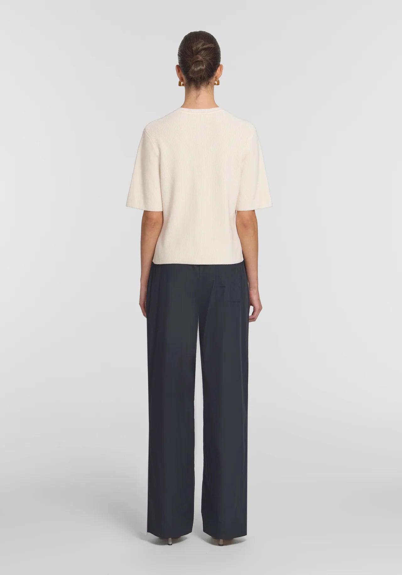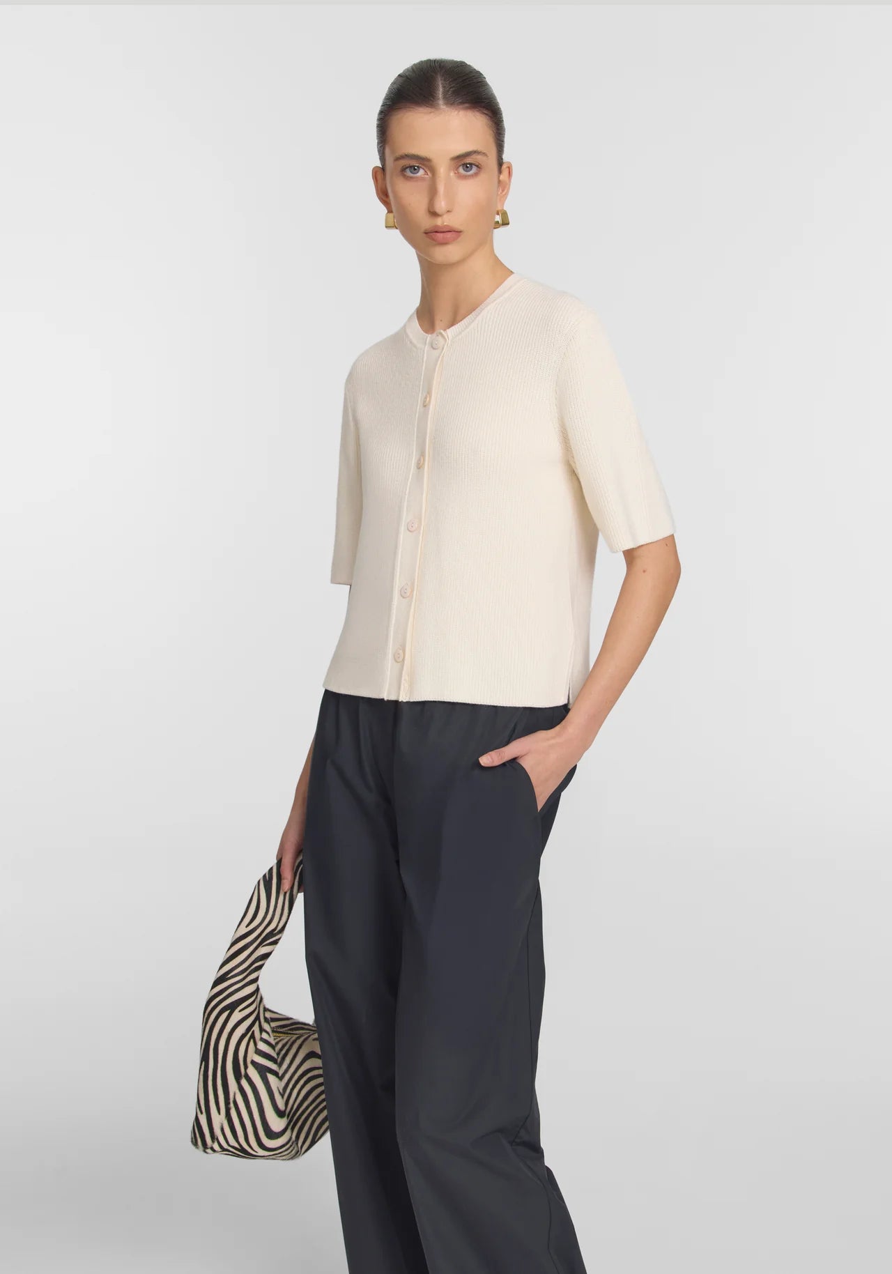 Radiate effortless elegance in the Violet Cardigan, crafted from a cotton-wool blend in classic ivory. Offering a gently relaxed fit, crew neckline, and side splits, it’s adorned with shell buttons for a versatile, enduring silhouette.